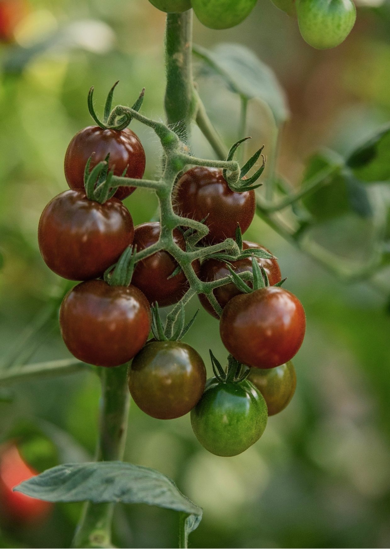 Die Cocktailparadeiser Cerise Noire bildet rotbraune, runde Früchte mit besonders intensivem Aroma. Diese robuste und reichtragende Sorte überzeugt durch ihren ausgewogenen Geschmack und liefert über lange Zeit zahlreiche aromatische Paradeiser für Garten, Hochbeet oder Balkon.
